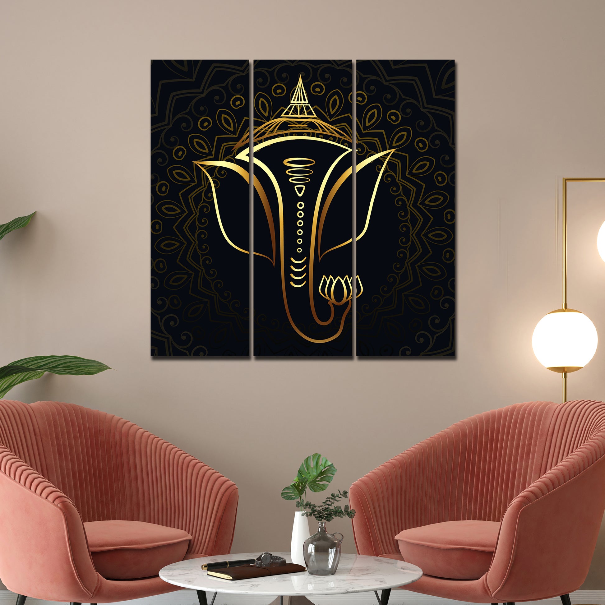 Lord Ganesha Modern Art Wall Painting Set of Three
