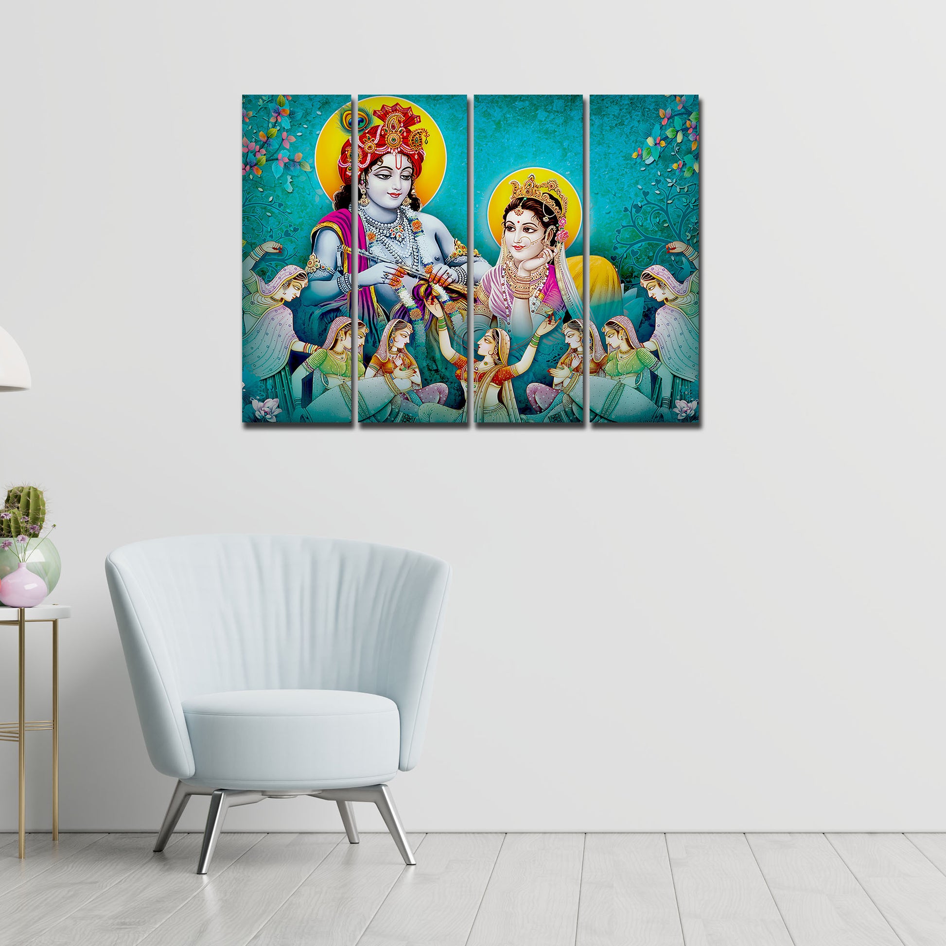 Lord Radha Krishna Canvas Wall Painting 4 Panel Set
