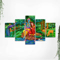 Lord Radha Krishna in Forest Wall Painting Set of Five