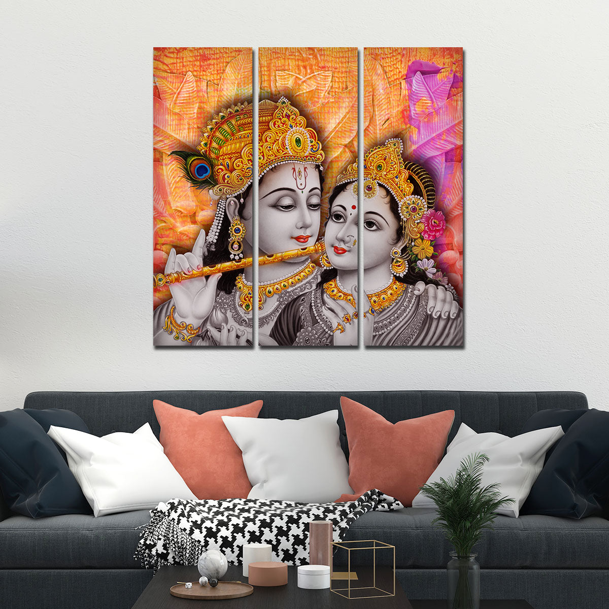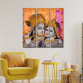 Lord Radha Krishna Playing Flute Canvas Wall Painting 3 Panel Set