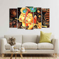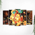 Lord Radha Krishna with Flute Set of Five Pieces Wall Painting
