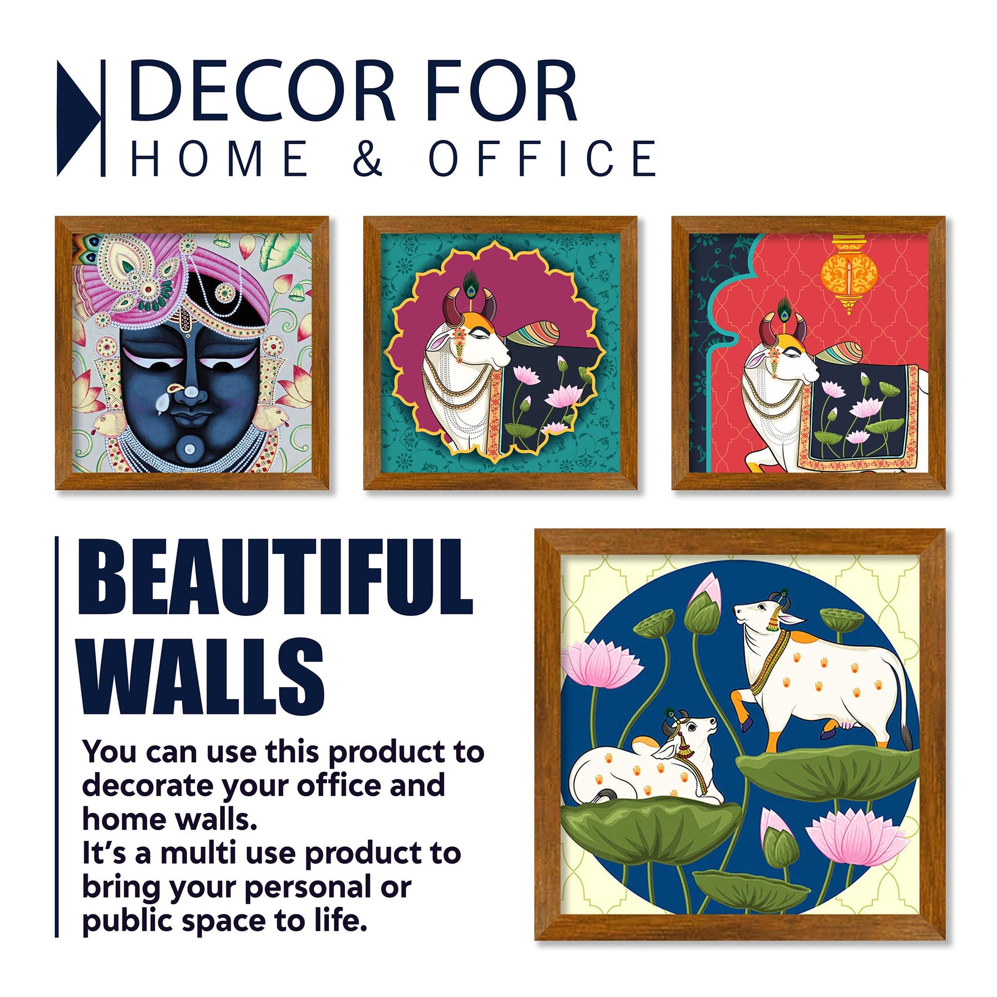 Lord Shrinathji Pichwai Cow Wooden Wall Frame Set of Four