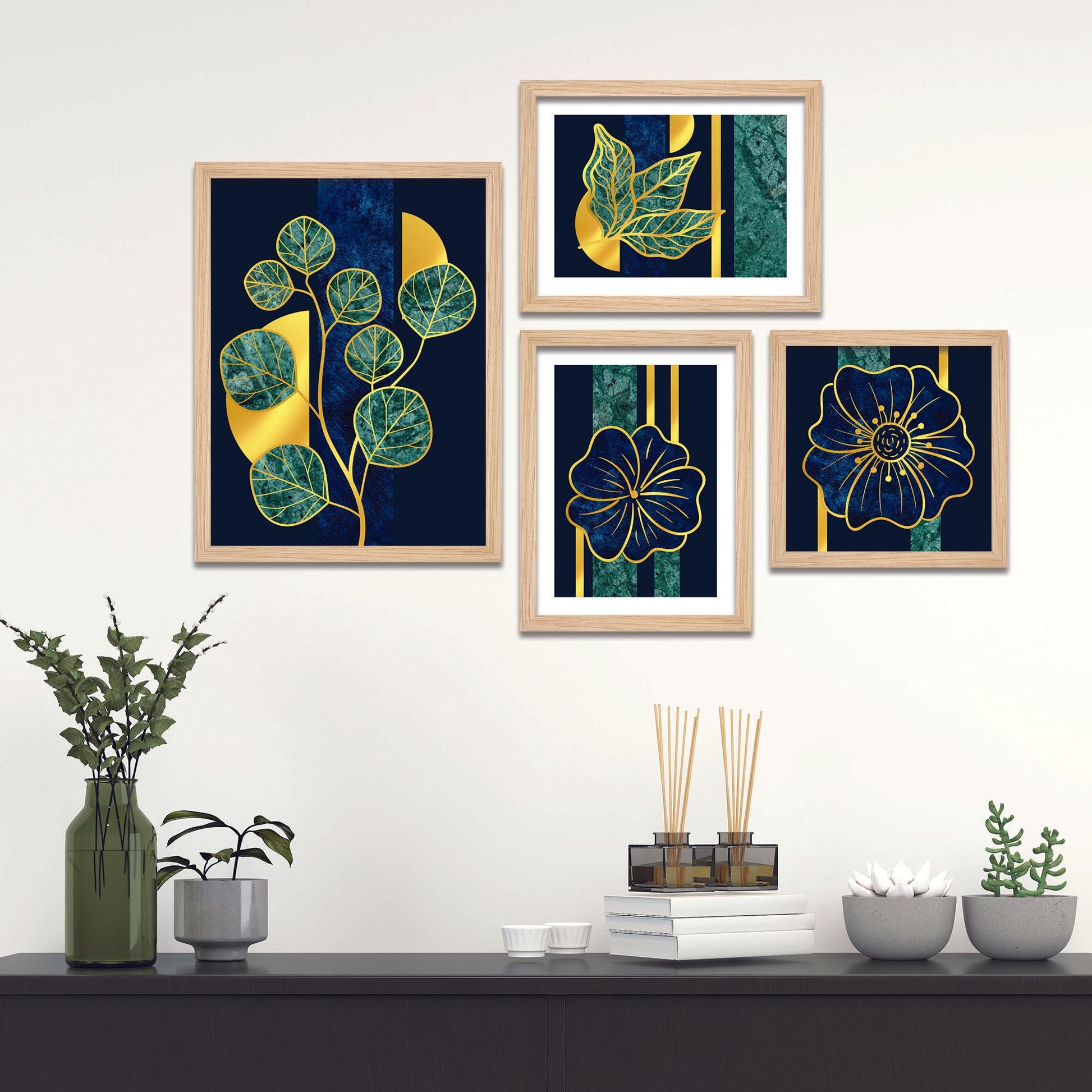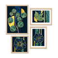Luxury Golden Leaf Pattern Art Wall Frame Set of Four