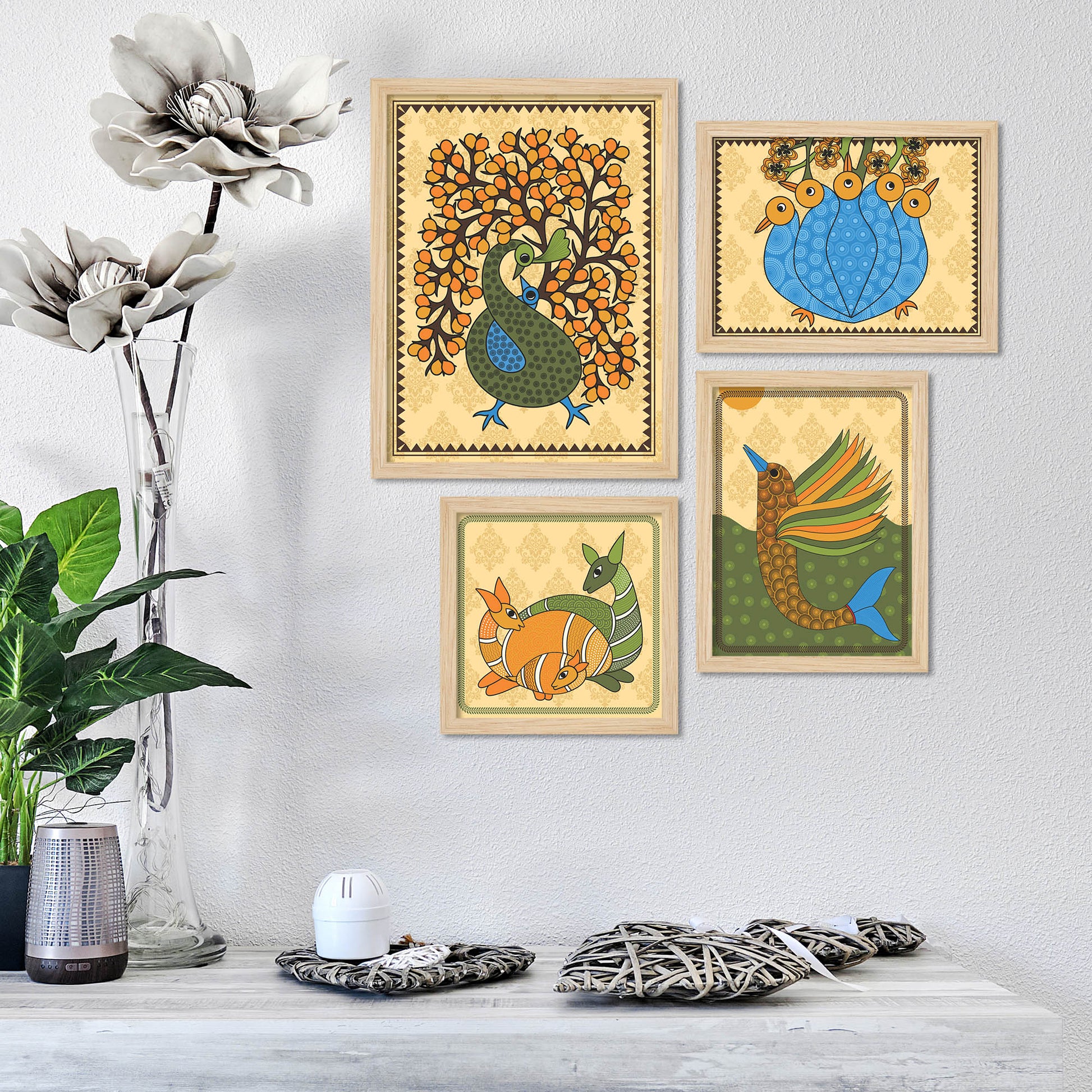 Madhubani Traditional Peacock Wall Frame Set of Four