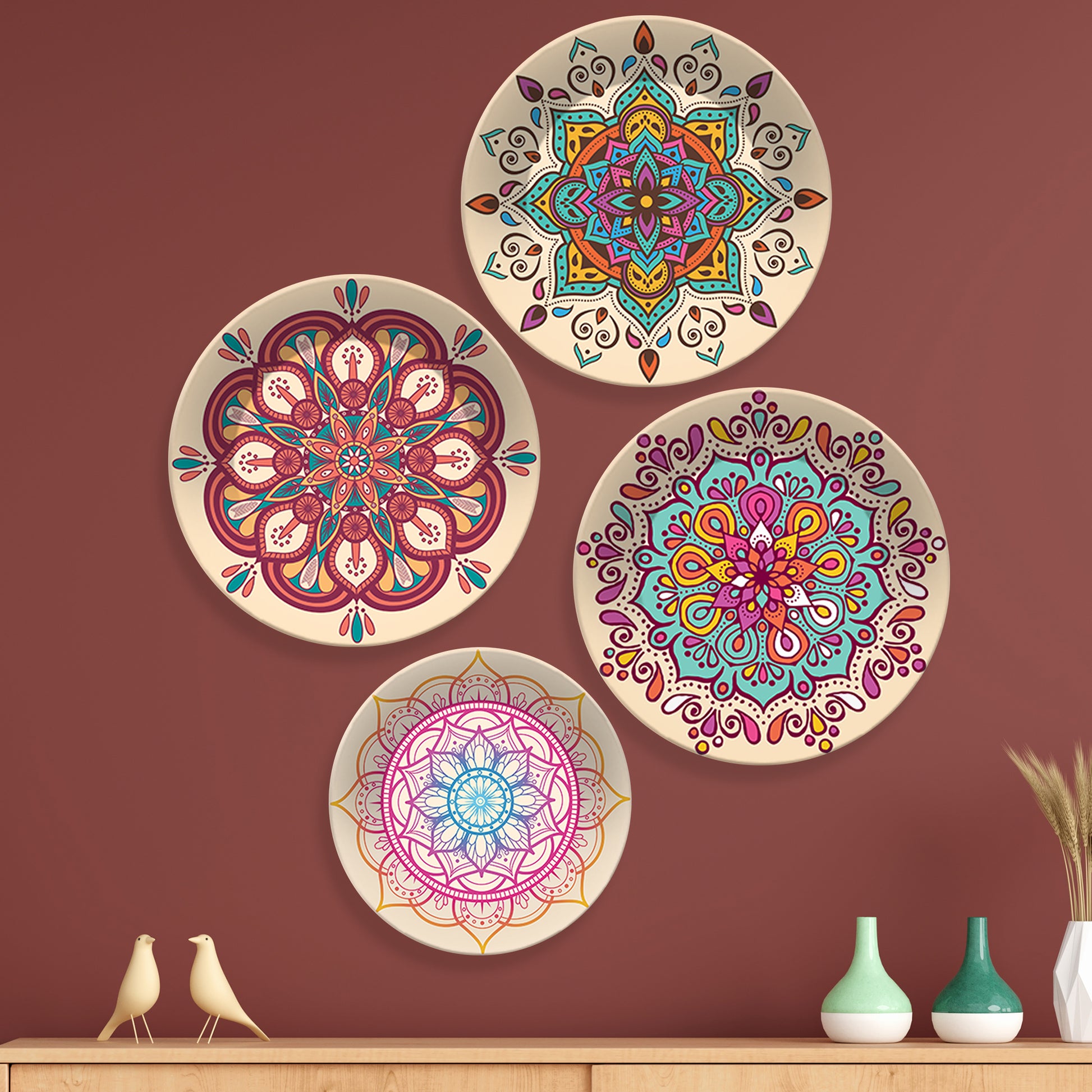 Mandala Pattern Ceramic Wall Plates Painting Set of Four