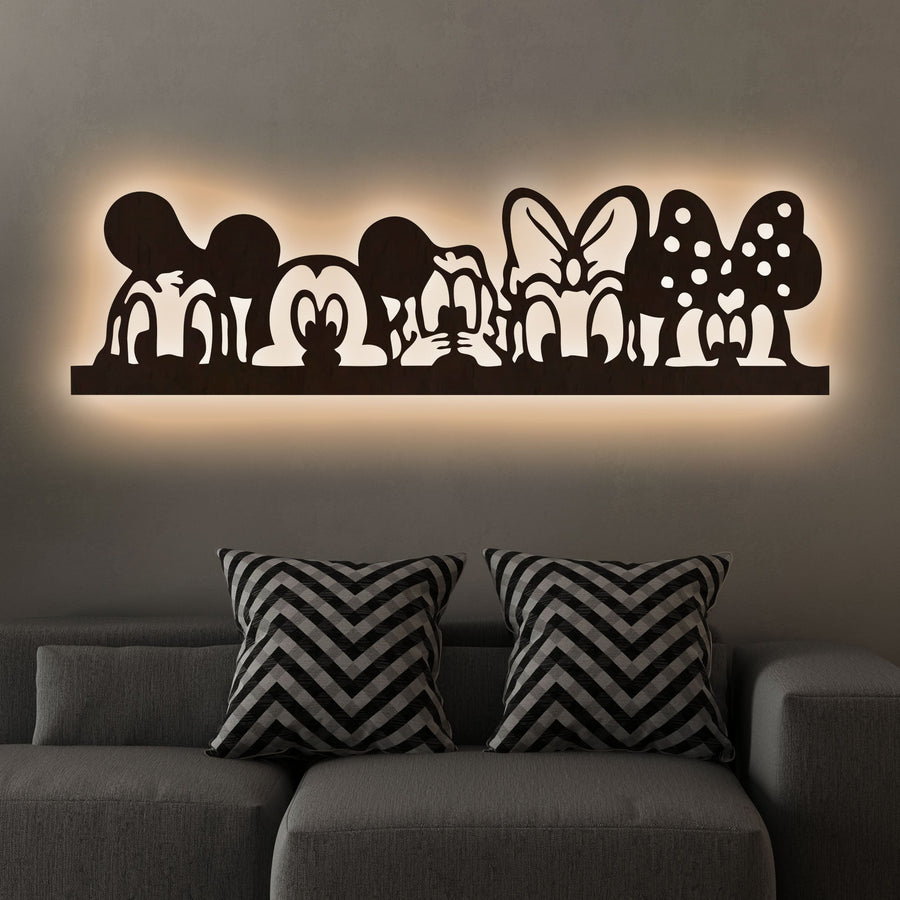 Mickey Mouse And Friends Backlit Wooden Wall Decor with LED Night Light Walnut Finish