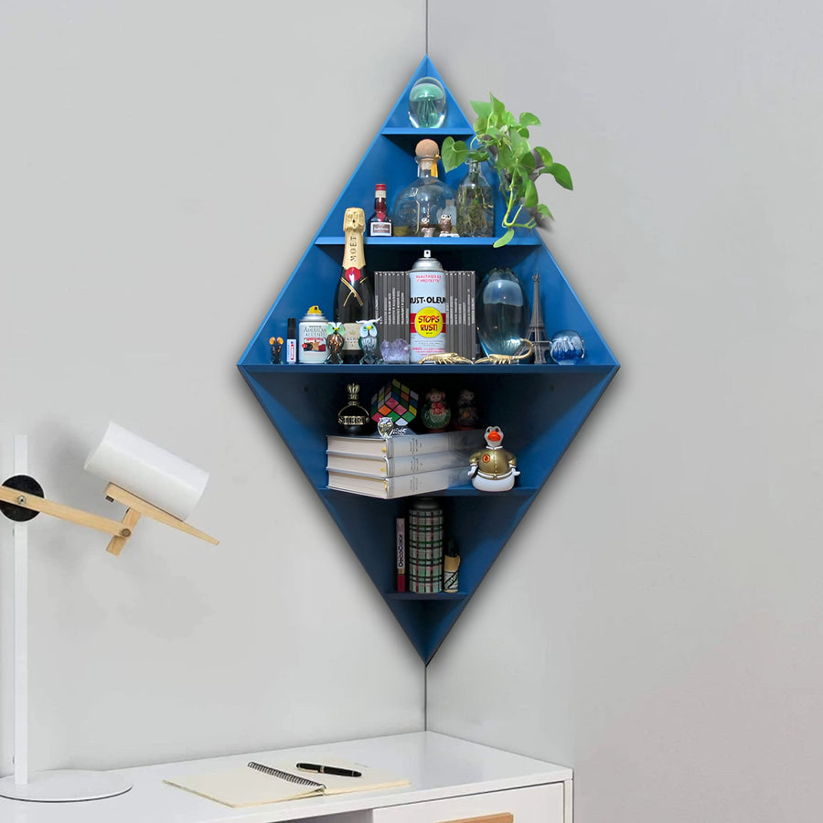 Modern Decorative Diamond Shaped Corner Shelves with Blue Finish