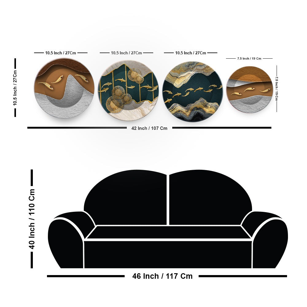 Modern Golden koi Fish Abstract Wall Plates Set of 4