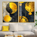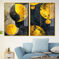 Modern Luxurious Golden Shapes Acrylic Floating Wall Painting Set Of 2