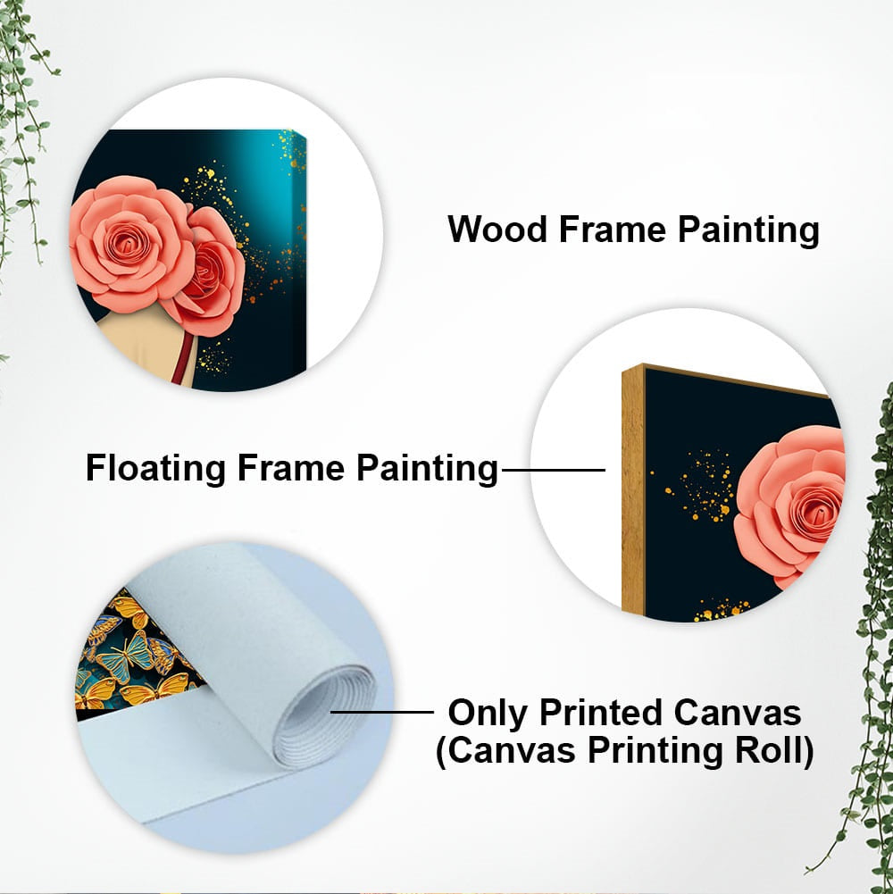 Modern Style Abstract Girl with Colorful Butterflies Premium Canvas Wall Painting