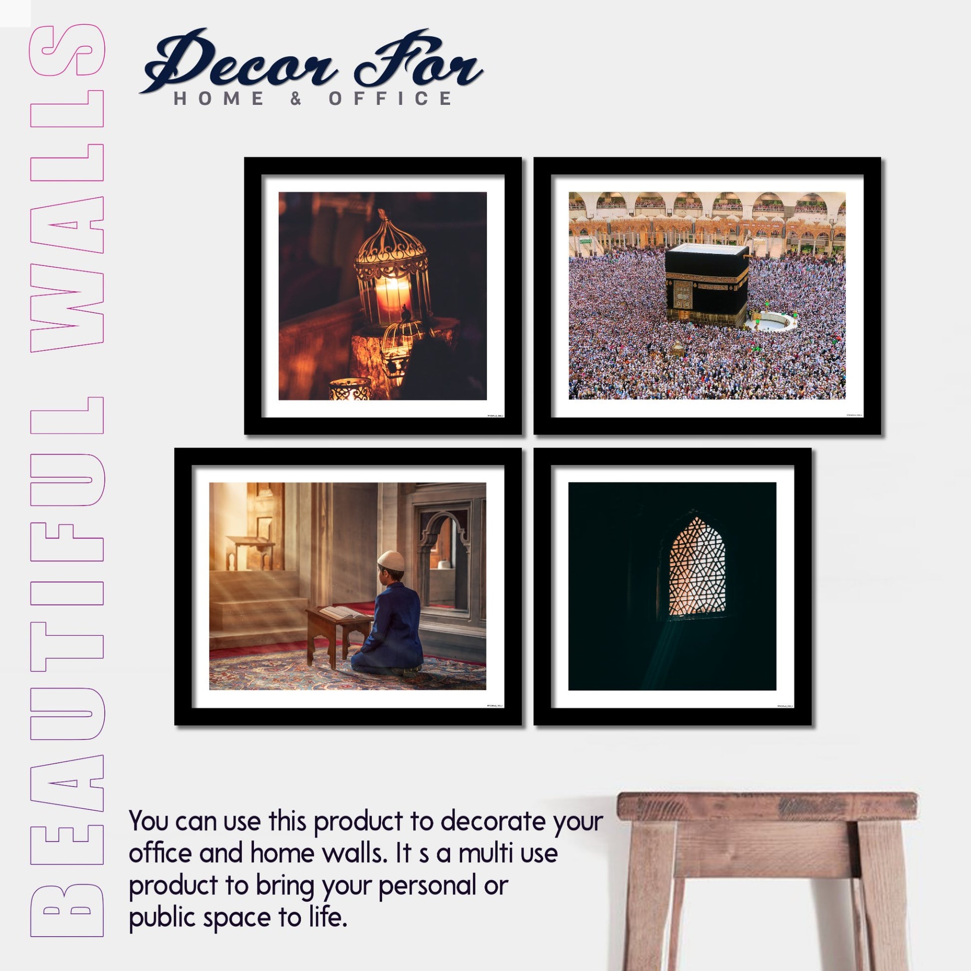Muslim Pilgrimage Praying & Kaaba 4 Pieces Wall Frame Hanging