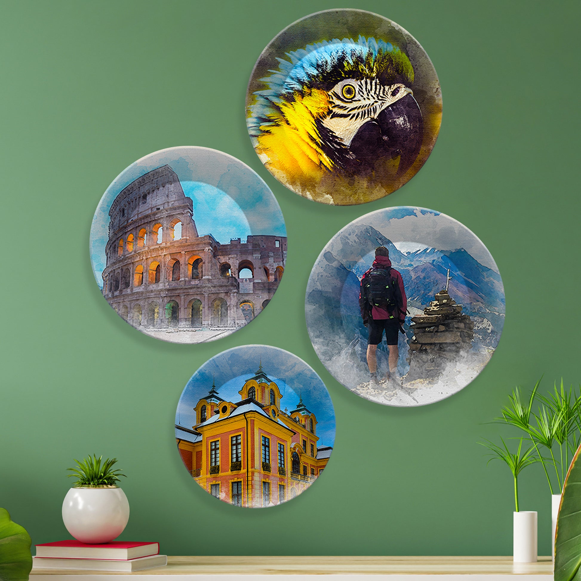 Nature & Architecture Wall Plates Painting Set of Four