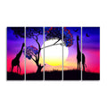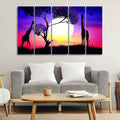 Pair of Giraffe at Night Canvas Wall Painting of Five Pieces