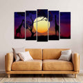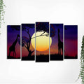 Pair of Giraffe at Night Canvas Wall Painting Set of Five Pieces