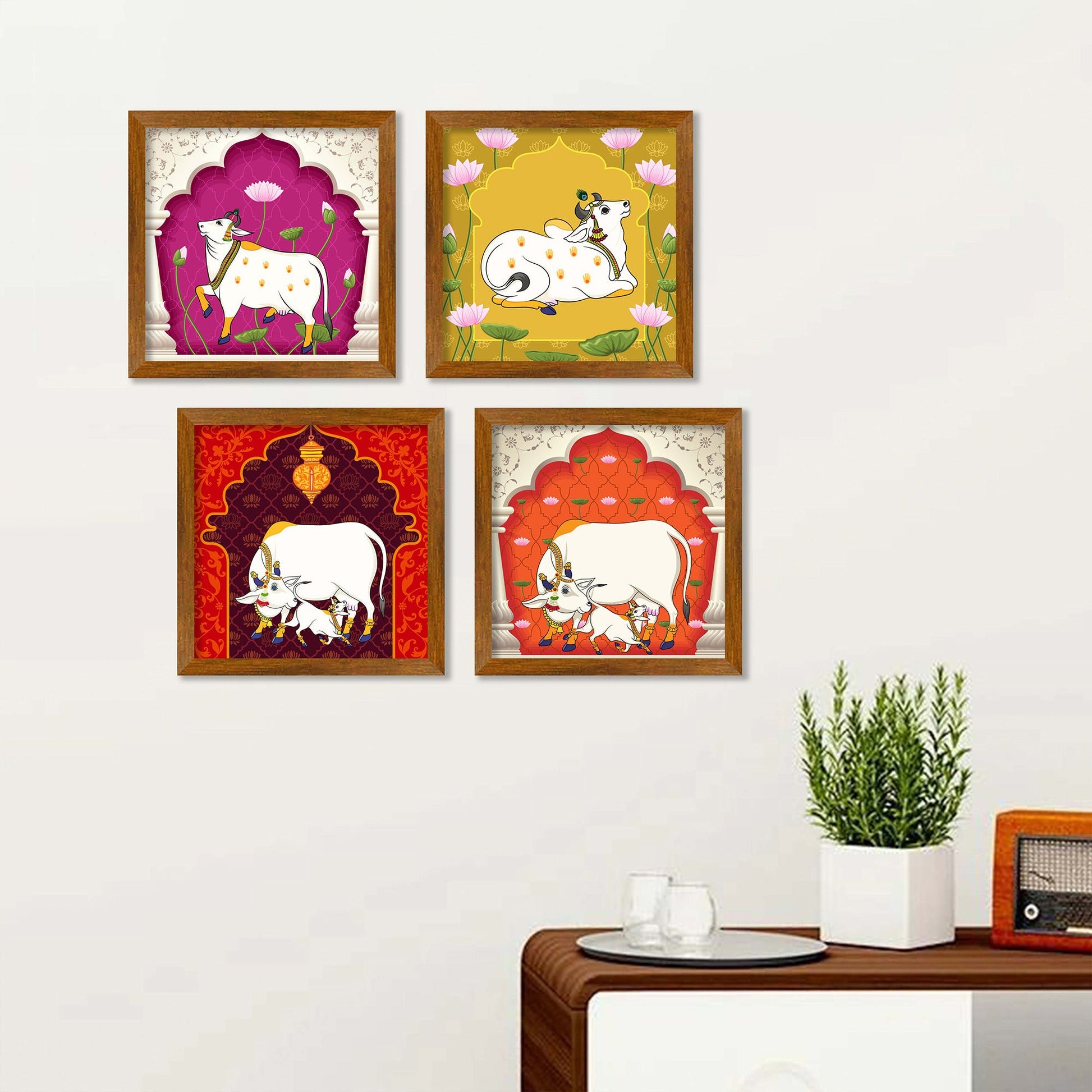 Pichwai Cow Floral Art Premium Wall Frame Set of Four