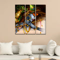 Playing Flute Krishna Canvas Wall Painting 3 Pieces Set