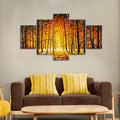 Premium 5 Pieces Wall Painting of Sunny Tree Forest
