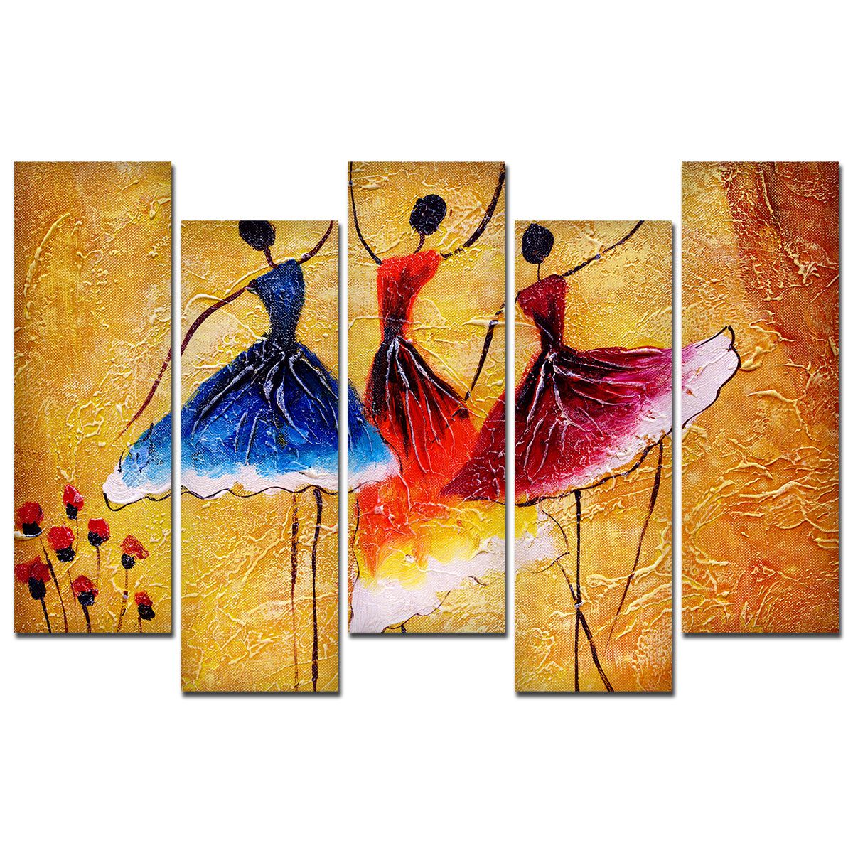 Premium 5 Pieces Wall Painting of Three Women doing Spanish Dance