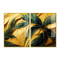 Premium Art of Leaves Acrylic Art Floating Wall Painting Set Of 2