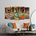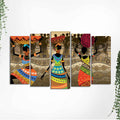Premium Canvas Wall Painting of African Warli Art Set of Five Pieces