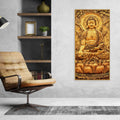 Premium Canvas Wall Painting of Golden Lord Buddha Sculpture
