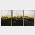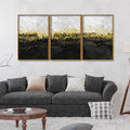 Premium Gold Glitter Particles on Black Background Floating Canvas Wall Painting Set of Three