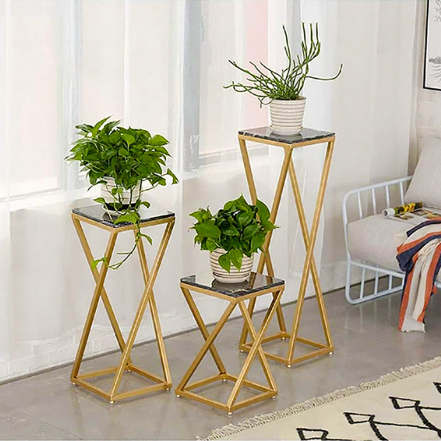 Premium Metal Planter Stand With Black Marble At Top (Set of 3)