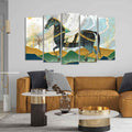 Premium Wall Painting of Horse and Golden trees of Five Pieces