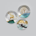 Premium Wall Plates Painting of Golden Deer Art Set of 3
