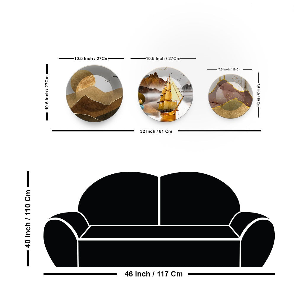 Premium Wall Plates Painting of Golden Mountains Set of 3