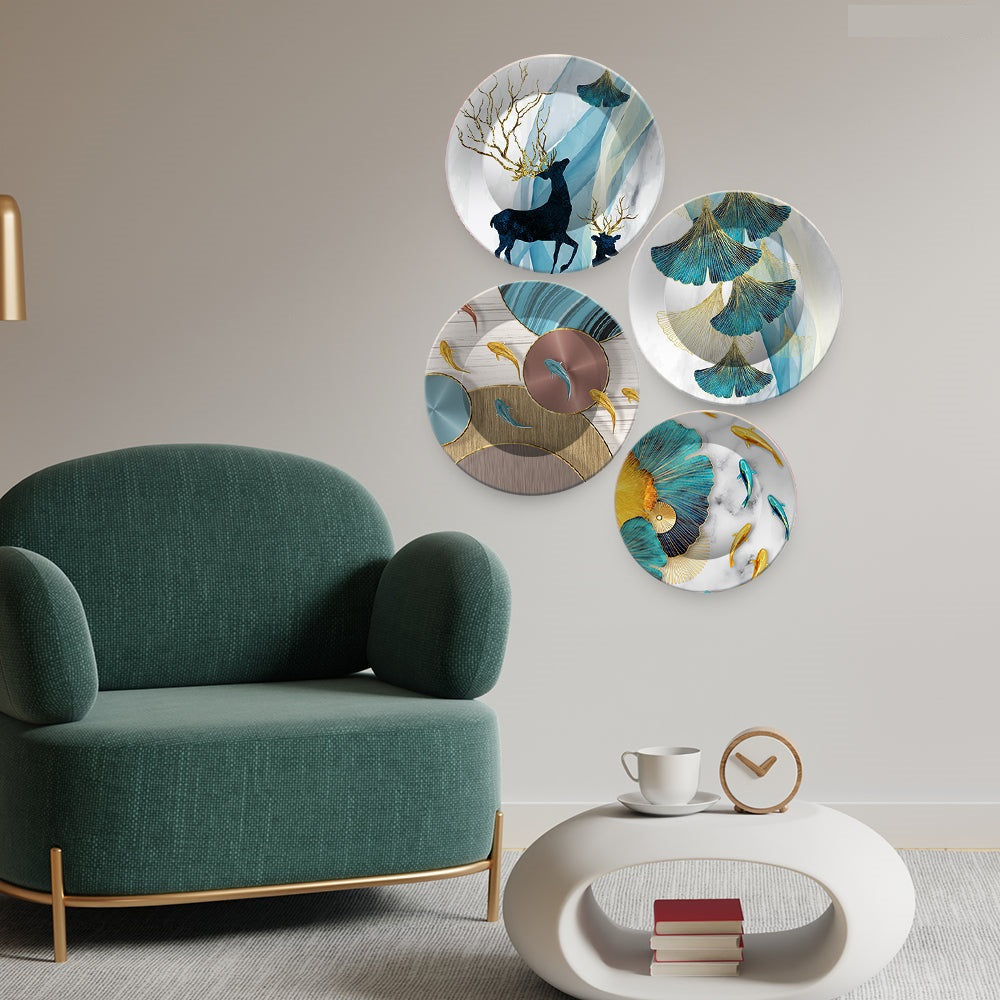 Premium Wall Plates Painting of Ocean Fish Set of 4