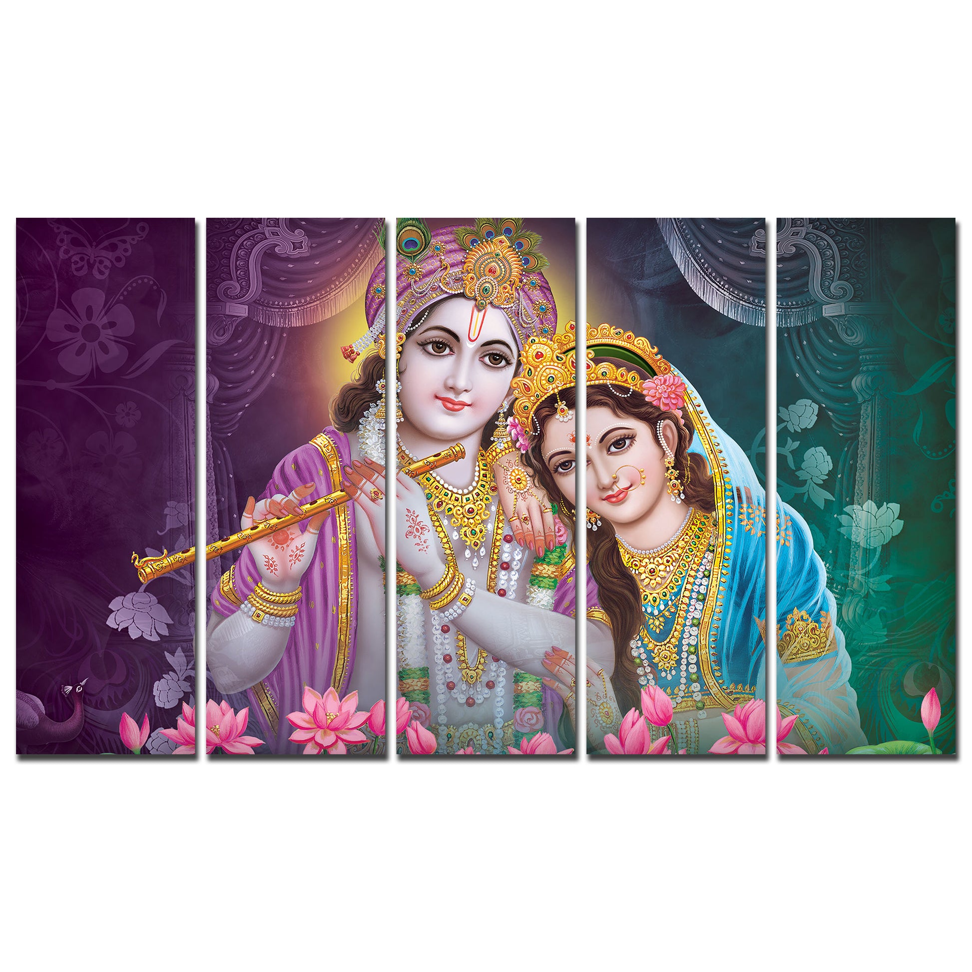 Radha Krishna Canvas Religious Wall Painting Set of 5