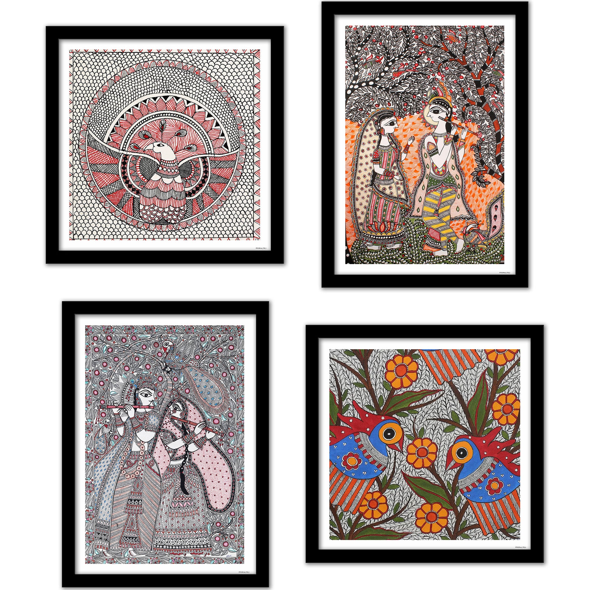 Radha Krishna Decorative Madhubani Wall Frame Set of Four