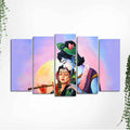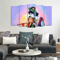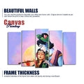 Radha Krishna Playing Flute Canvas Wall Painting Set of Five Panels