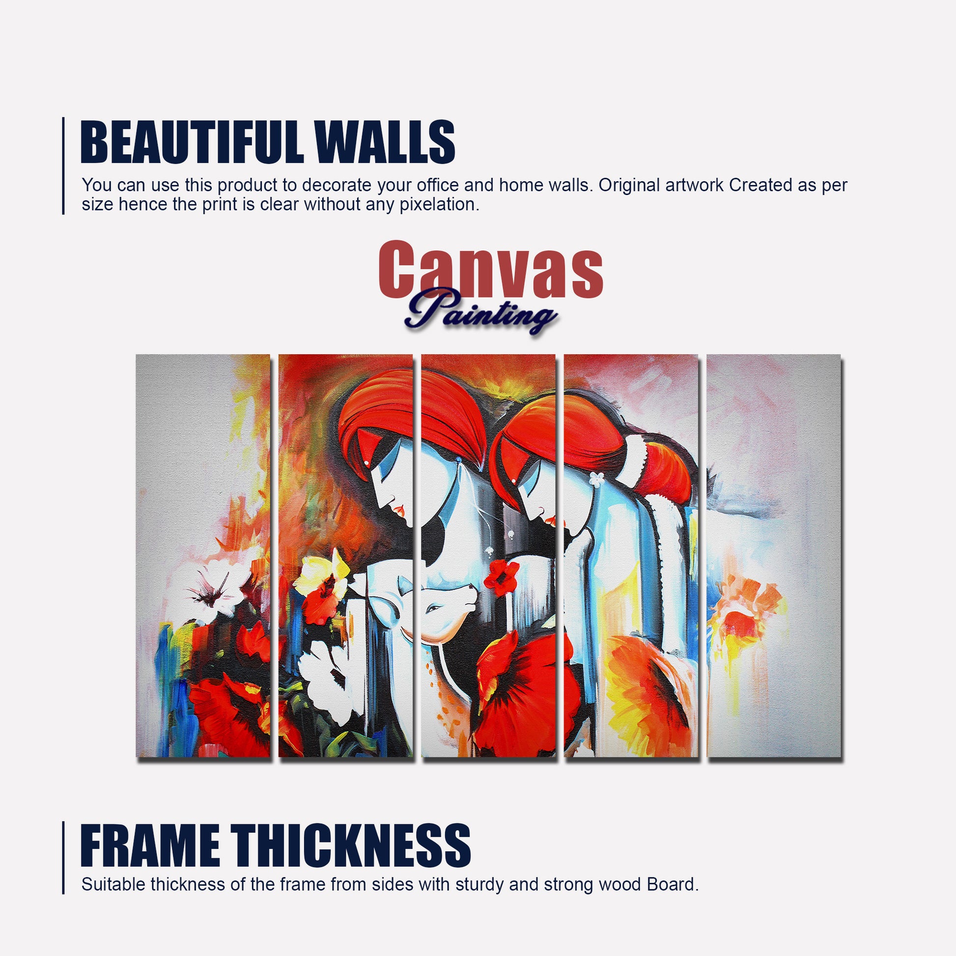 Radha Krishna Wall Painting Canvas 5 Panels