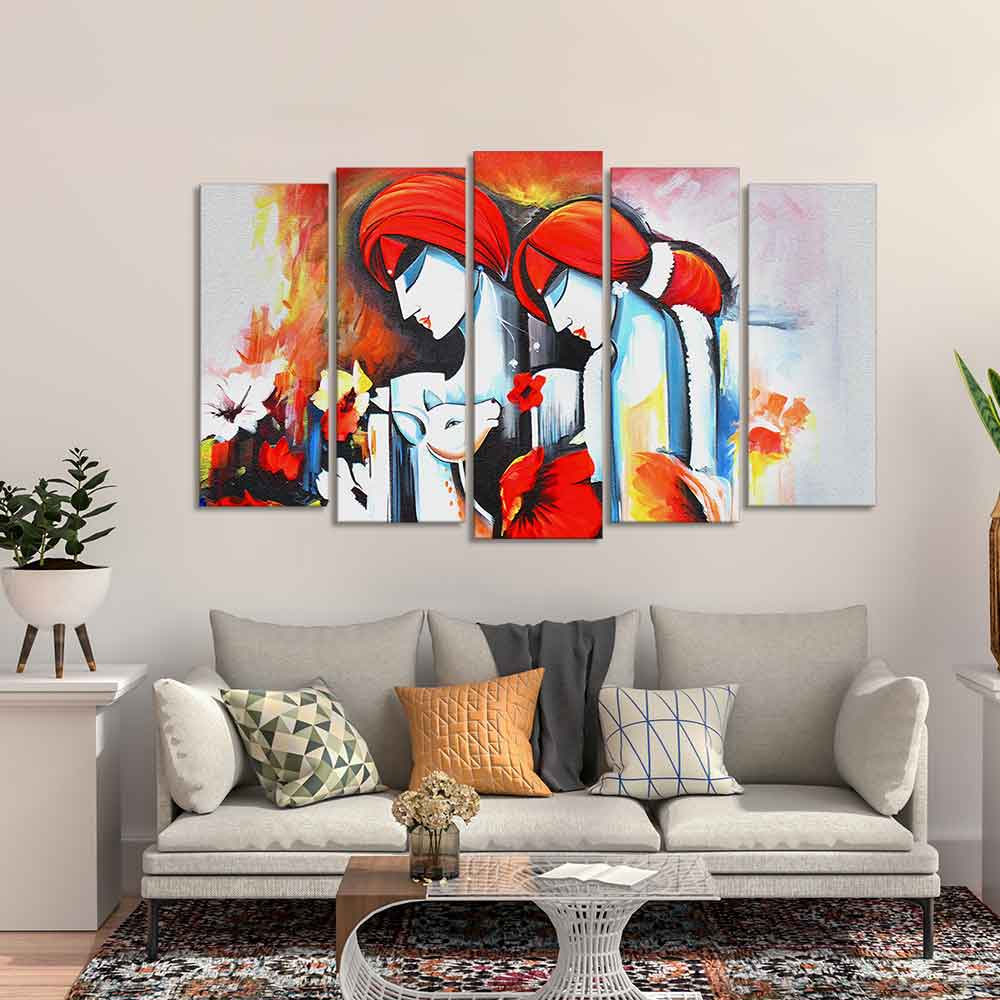 Radha Krishna Wall Painting Canvas of Five Panels