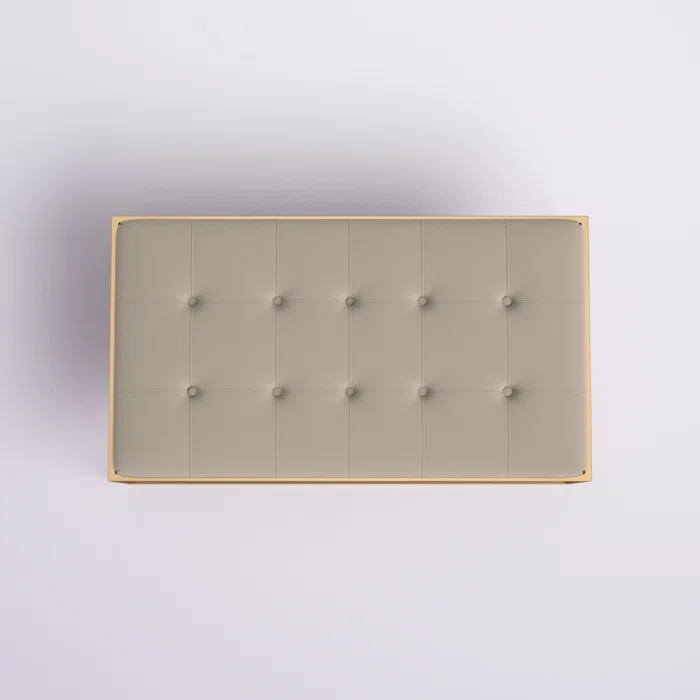 Rectangular Shaped Classic Velvet Ottoman with Golden Metal Finish