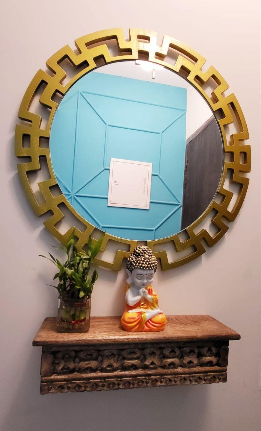 Round Shape Unique Design Wooden Wall Mirror With Gold Texture