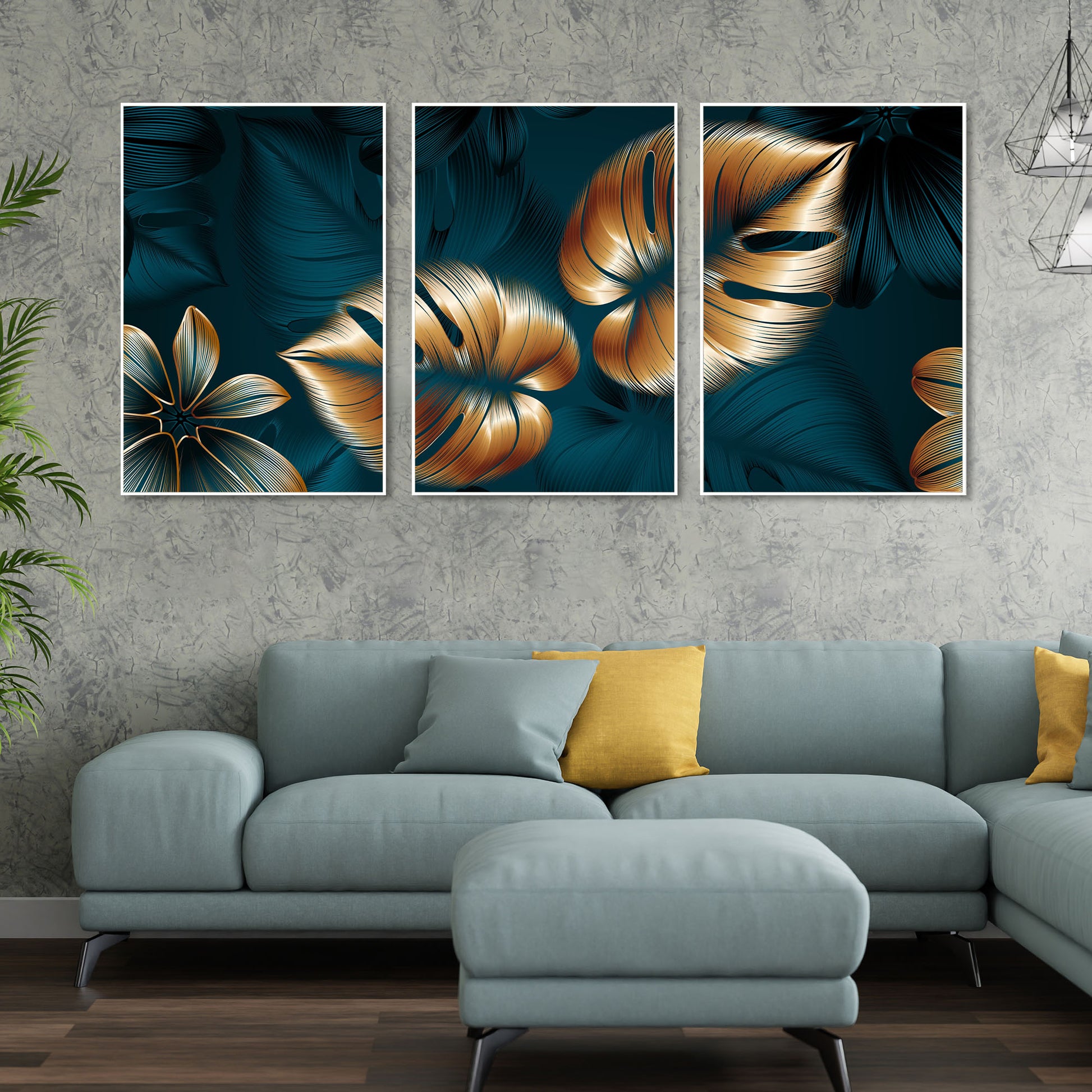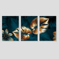 Shiny Golden Leaves Floating Canvas Wall Painting Set of Three