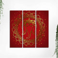 Shree Ganesha Face Canvas Wall Painting of Three Panels