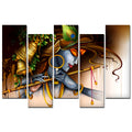 Spiritual 5 Pieces Premium Wall Painting of Lord Krishna Playing Bansuri