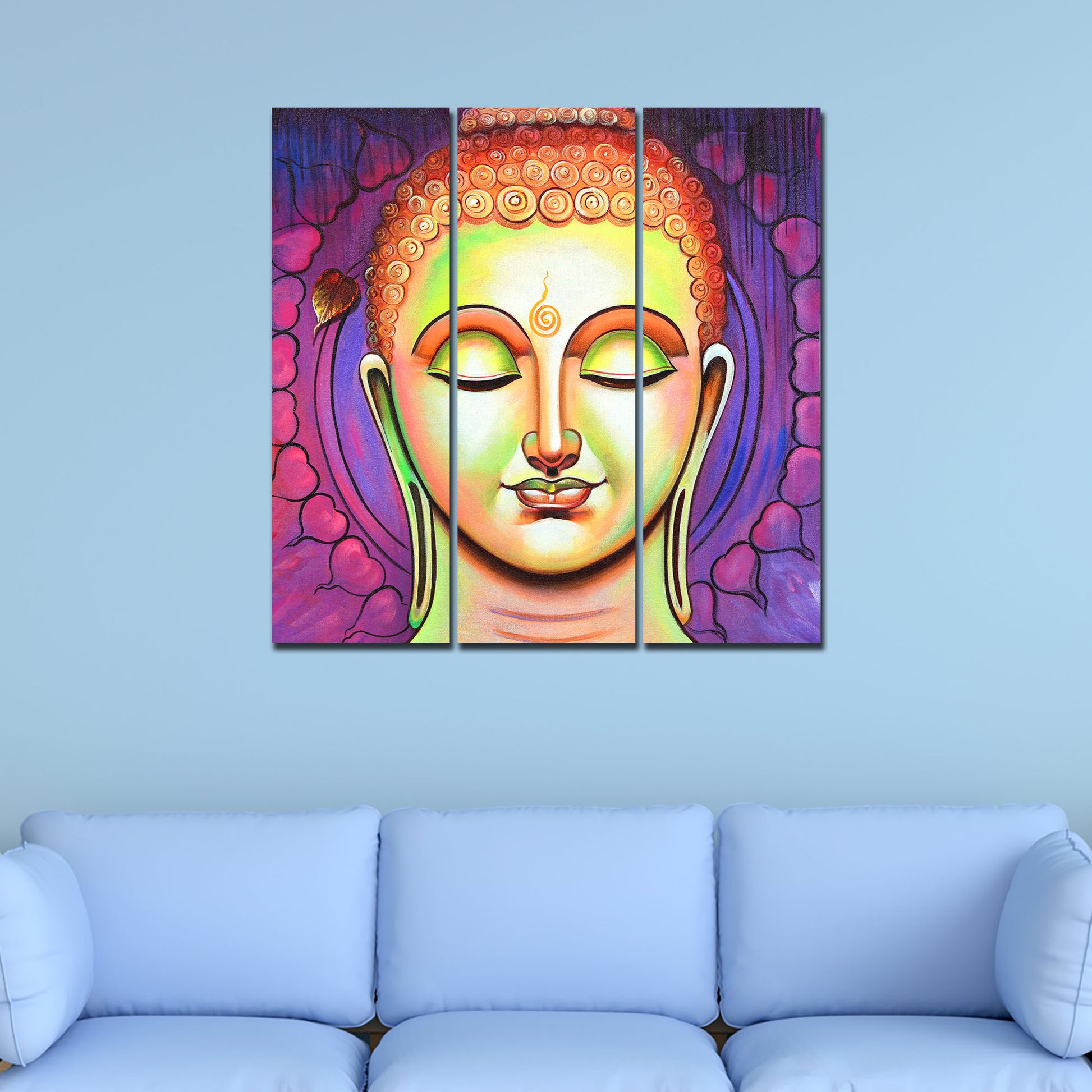 Spiritual Lord Buddha Meditating Wall Painting Three Pieces