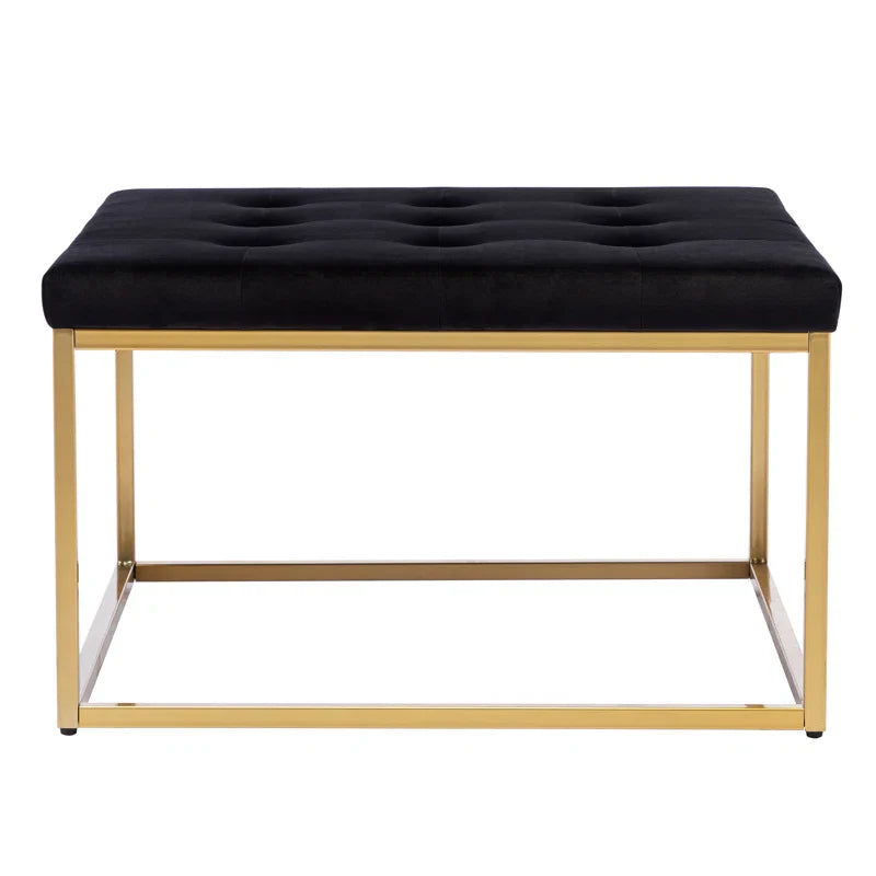 Square Shaped Black Velvet Ottoman with Golden Metal Finish