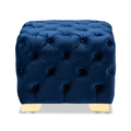 Square Shaped Royal Blue Velvet Ottoman with Golden Metal Finish