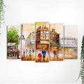 Street View of Paris Premium Canvas Wall Painting Set of Five Pieces