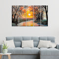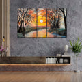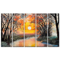 Beautiful Forest Sunset Canvas Wall Painting 5 Pieces