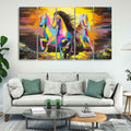 Three Running Horses Abstract Art Canvas Five Pieces Wall Painting