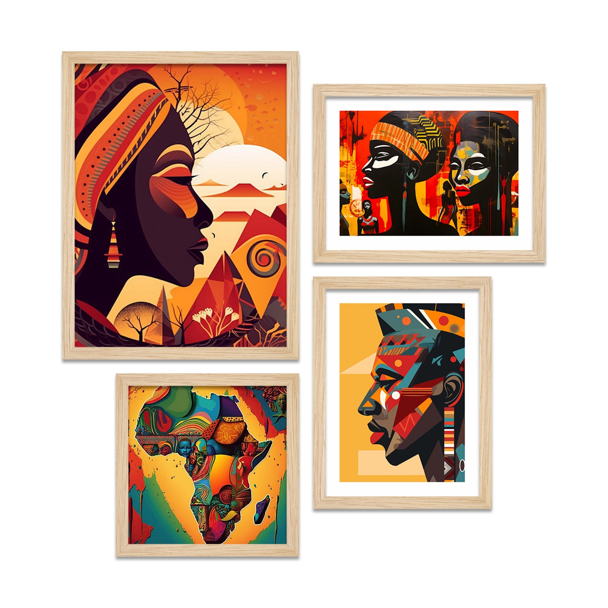 Traditional African Women Art Wall Frame Set of Four
