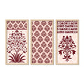 Traditional Flower Pattern with Pink Shade Art Wall Frame Set of Three