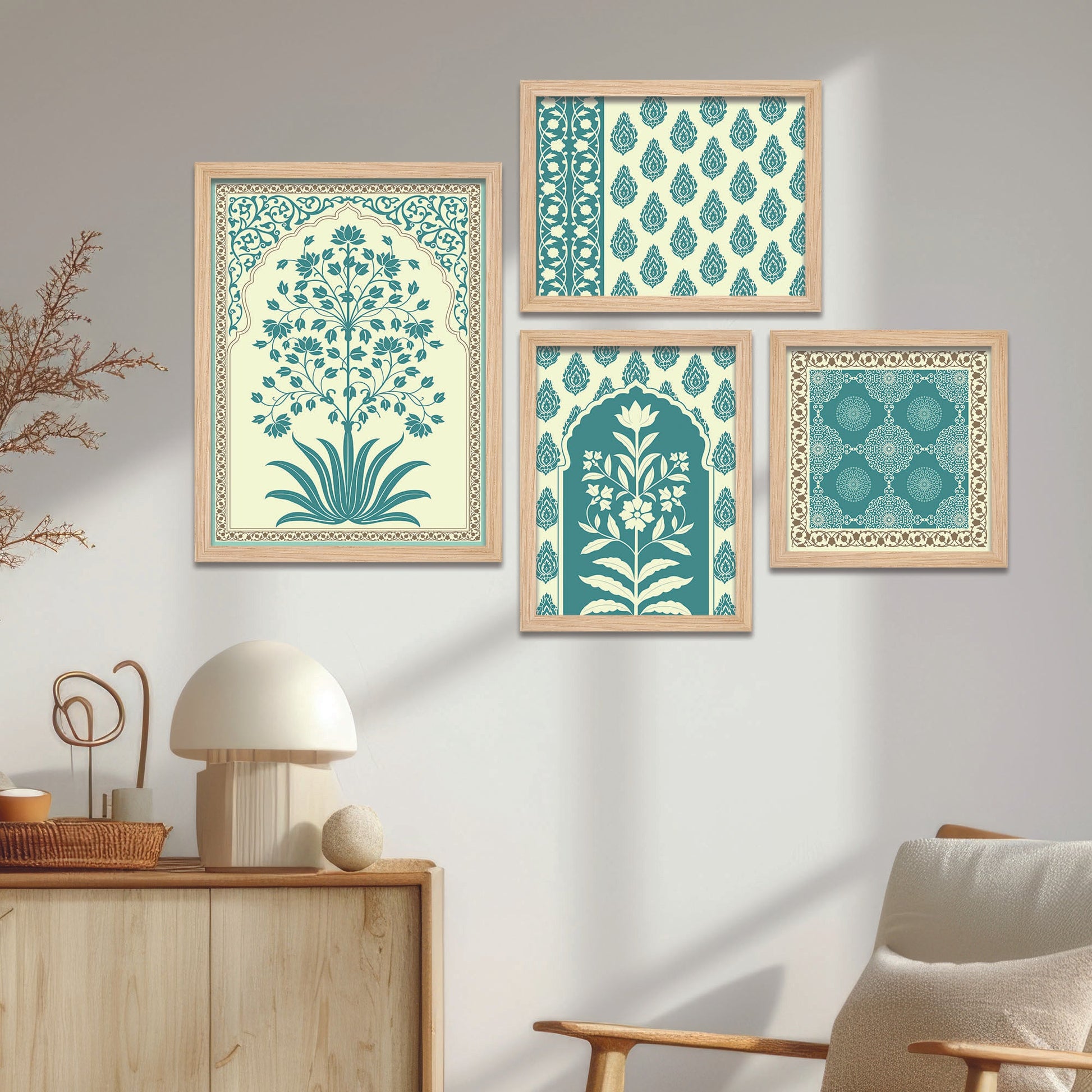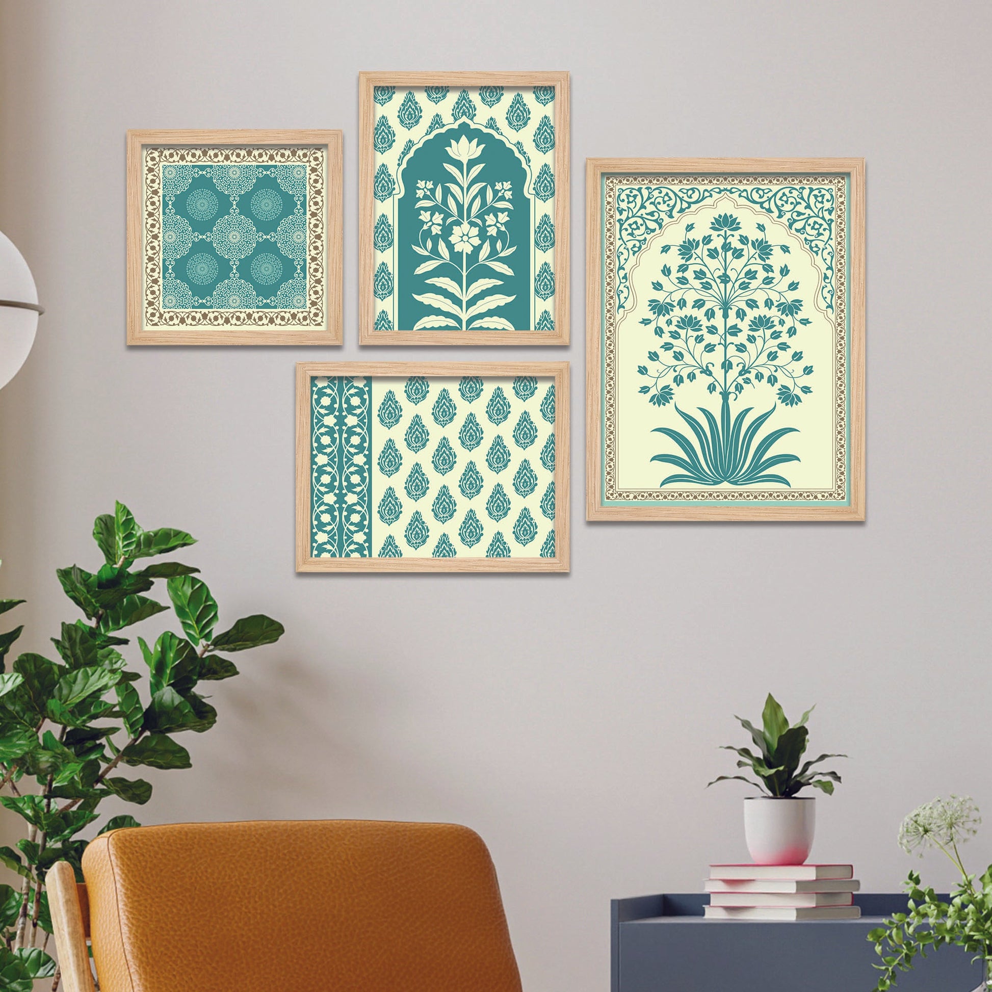 Traditional Motif Flower Pattern Art Wall Frame Set of Four